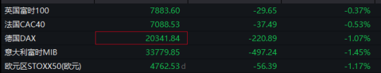 今日,在隔夜美股大跌后,亞太市場(chǎng)普遍走低,日經(jīng)225指數一度跌超5%。歐股今日開(kāi)盤(pán)后也迅速走低,截至發(fā)稿,主要指數均轉跌,德國DAX指數、意大利富時(shí)MIB指數、歐元區斯托克50指數跌幅均超1%。