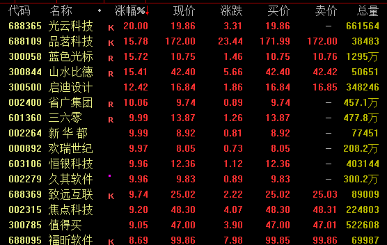 AI應用概念盤(pán)中走勢活躍,截至收盤(pán),光云科技20%漲停,品茗科技漲近16%續創(chuàng )新高,藍色光標(300058)、山水比德(300844)均漲超15%,海天瑞聲漲超7%。
