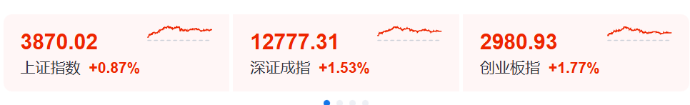 25日,市場(chǎng)全天震蕩反彈,三大指數集體上漲。截至收盤(pán),滬指漲0.87%,深成指漲1.53%,創(chuàng )業(yè)板指漲1.77%。