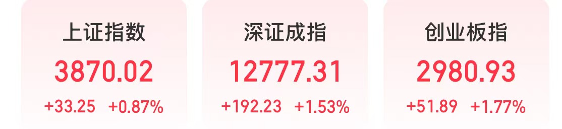 今天,A股上漲。截至收盤(pán),上證指數上漲0.87%,深證成指上漲1.53%,創(chuàng )業(yè)板指上漲1.77%。