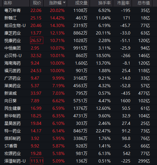 抗流感概念股反復活躍,粵萬(wàn)年青(301111)20%漲停,廣濟藥業(yè)(000952)實(shí)現3連板,中恒集團(600252)、康芝藥業(yè)(300086)、海南海藥(000566)等多股漲停。