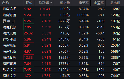 海南板塊早盤(pán)走高,海南瑞澤(002596)、海南海藥雙雙實(shí)現2連板,康芝藥業(yè)、羅牛山(000735)、新大洲A(000571)、海南礦業(yè)(601969)等跟漲。