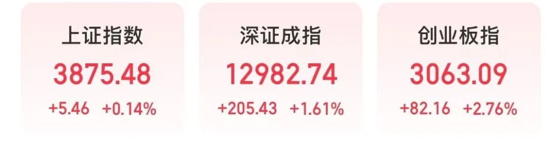截至上午收盤(pán),上證指數上漲0.14%,深證成指上漲1.61%,創(chuàng )業(yè)板指上漲2.76%。