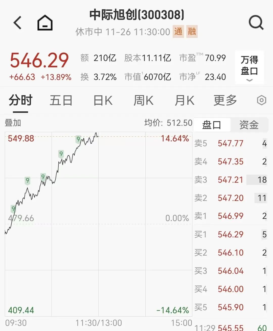光模塊、創(chuàng )新藥強勢拉升,中際旭創(chuàng )漲近14%,總市值超6000億元