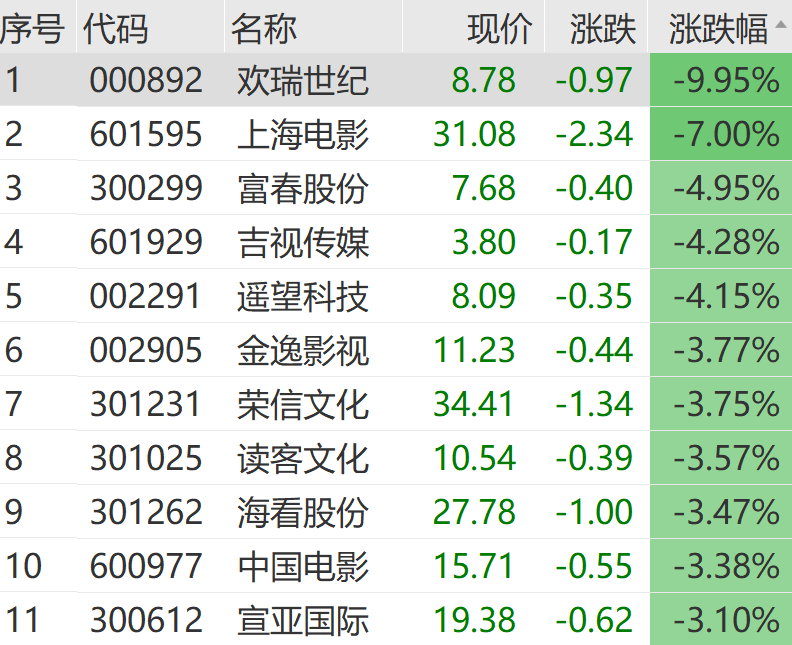 近期股價(jià)走高的上海電影(601595)上午大跌7%,富春股份(300299)、吉視傳媒(601929)、遙望科技等跌幅居前。