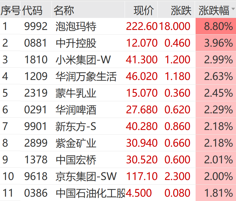港股市場(chǎng)上午反復震蕩,截至午間收盤(pán),三大指數均飄紅;泡泡瑪特漲近9%,領(lǐng)漲恒指成份股。