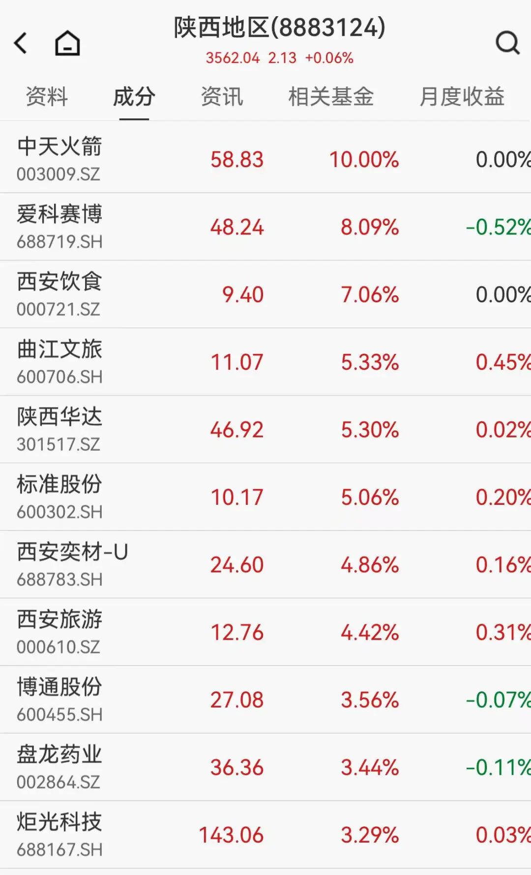 陜西國資股異動(dòng),中天火箭(003009)直線(xiàn)封漲停。西安飲食(000721)、愛(ài)科賽博、陜西華達(301517)等多股強勢拉升。