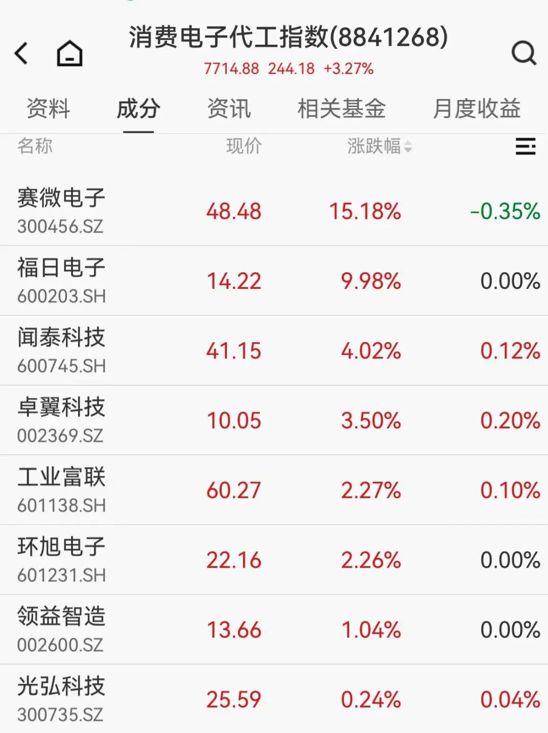 消費電子板塊走強,賽微電子(300456)大漲15%,福日電子(600203)、聞泰科技(600745)等多股漲停。