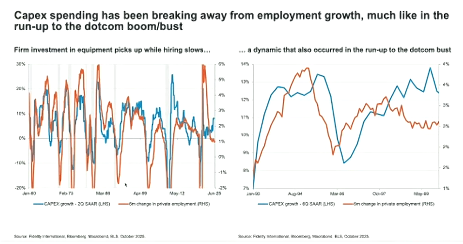 盡管部分AI公司估值偏貴,但富達國際認為AI帶來(lái)的強勁業(yè)績(jì)增長(cháng)仍將持續,在基本面加持的情況下AI投資還是有不錯的回報。更重要的是,AI資本支出增長(cháng)的規模之大,帶動(dòng)了礦業(yè)、電力等能源需求大幅增長(cháng),還將帶來(lái)廣泛生產(chǎn)力的提升。