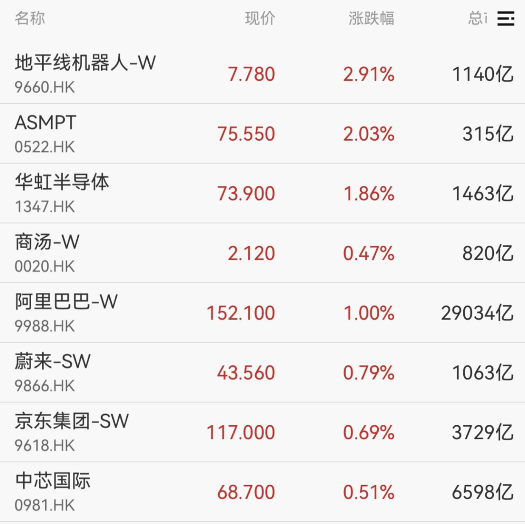 港股方面,三大指數走低,地平線(xiàn)機器人、華虹半導體、阿里巴巴漲超1%。