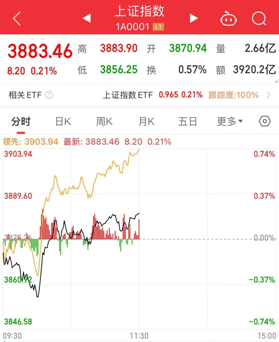 隨后,大消費也來(lái)“助力”,乳業(yè)、免稅店等板塊拉升。截至上午收盤(pán),上證指數上漲0.21%,深證成指上漲0.72%,創(chuàng )業(yè)板指上漲0.71%。