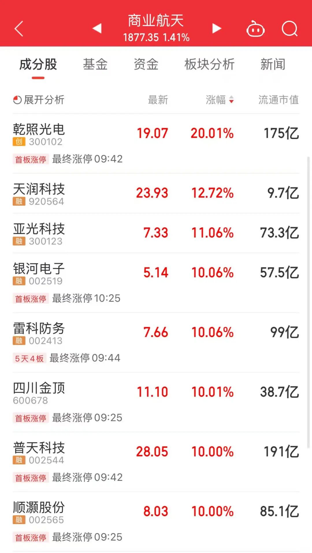 今天上午,商業(yè)航天板塊上漲,乾照光電(300102)、亞光科技(300123)等個(gè)股大漲。
