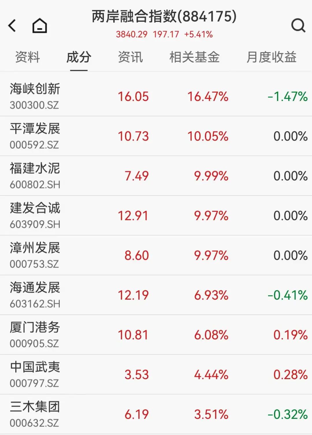 福建板塊反復活躍,午后進(jìn)一步加大反彈力度,海峽創(chuàng )新(300300)大漲超16%,平潭發(fā)展(000592)、福建水泥(600802)等多股漲停。