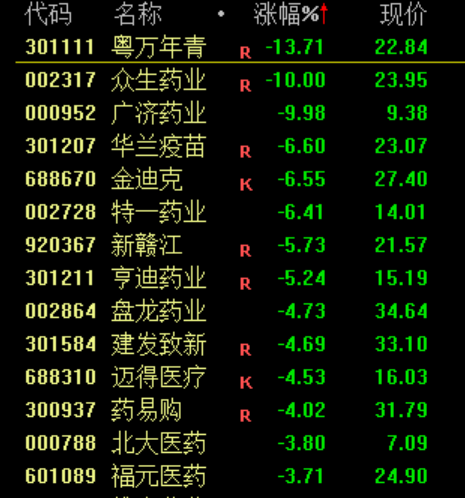 下跌方面,抗流感概念股下挫,眾生藥業(yè)(002317)、廣濟藥業(yè)(000952)跌停。