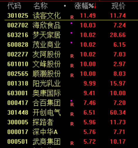 大消費板塊探底回升,海欣食品(002702)上演“地天板”。