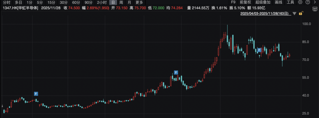 11月28日,半導體板塊逆市走強。其中,華虹半導體上漲2.34%。