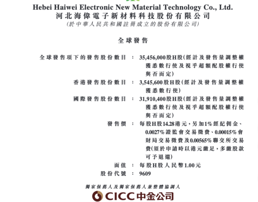 海偉股份首日掛牌下跌22.97%,報收于11.00港元/股。