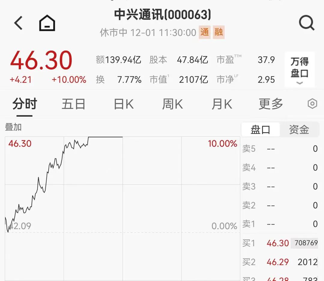 A股中興通訊開(kāi)盤(pán)后持續走高,截至發(fā)稿已觸及漲停,最新股價(jià)報46.3元/股。港股中興通訊同樣大幅上漲,截至發(fā)稿,最新股價(jià)報34.62港元/股,漲超10%。