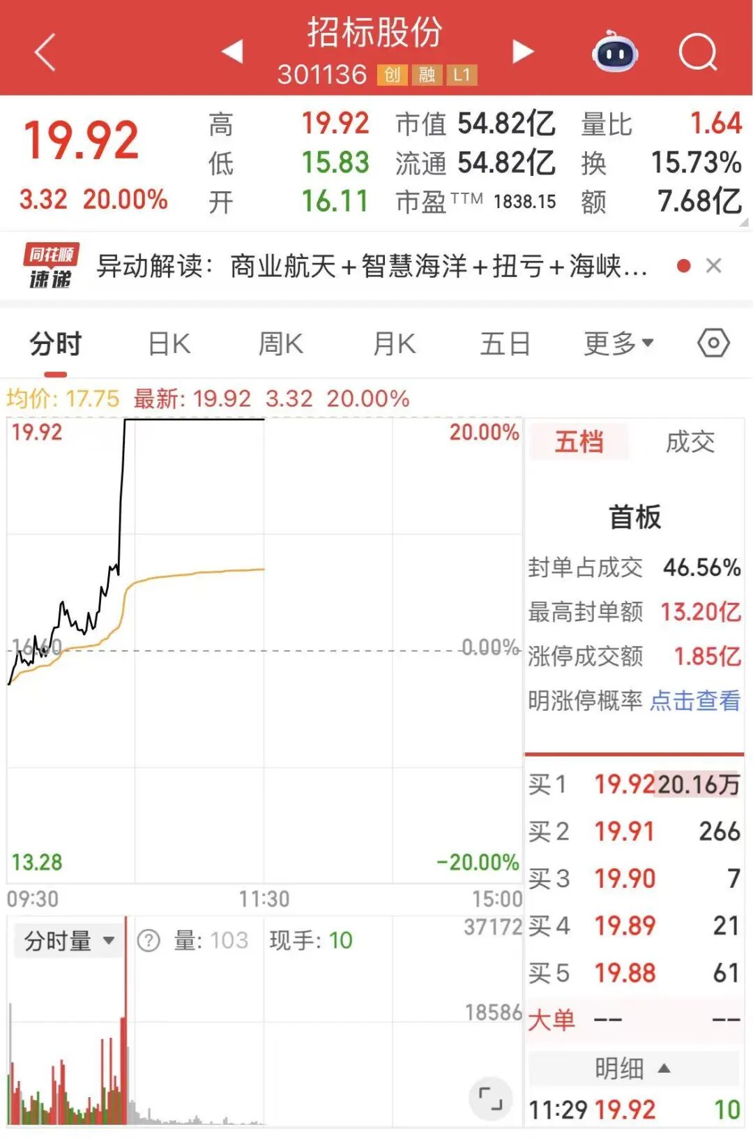 301136,3分鐘直線(xiàn)封板