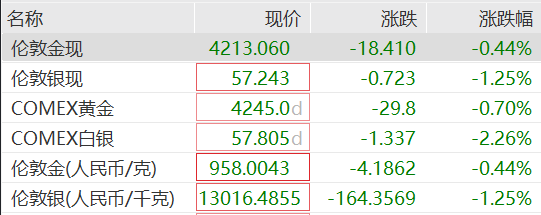 大宗商品方面,截至15:08,現貨黃金短線(xiàn)跌近20美元,日內跌約0.44%。白銀價(jià)格在創(chuàng )下歷史新高后出現回調,截至發(fā)稿現貨白銀跌1.25%,報57.243美元/盎司。
