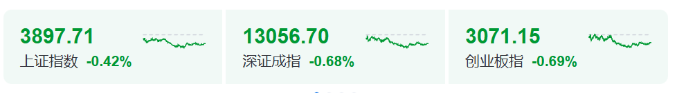 2日,市場(chǎng)全天震蕩調整,三大指數集體下挫。截至收盤(pán),滬指跌0.42%,深成指跌0.68%,創(chuàng )業(yè)板指跌0.69%。
