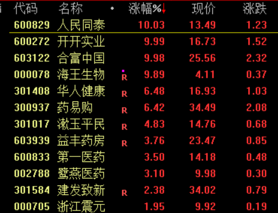 醫藥商業(yè)股拉升,人民同泰(600829)、海王生物(000078)等漲停。