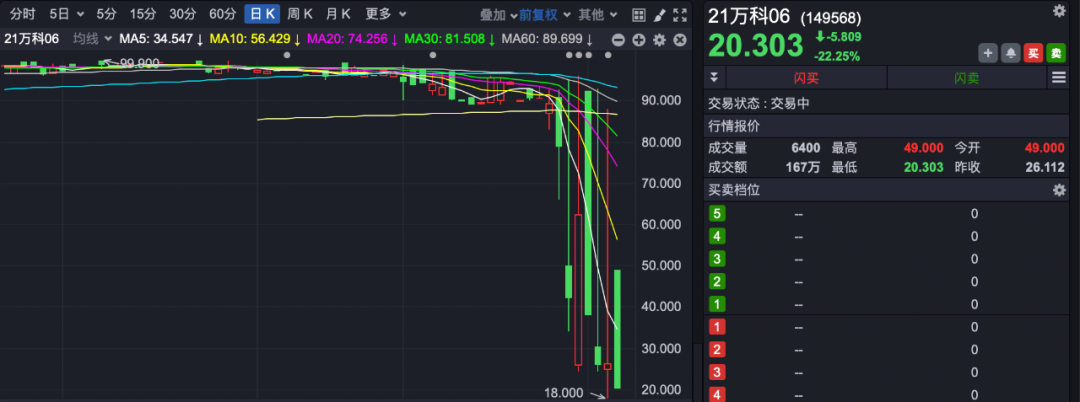 萬(wàn)科債券大跌。深交所公告,“21萬(wàn)科06”盤(pán)中成交價(jià)較前收盤(pán)價(jià)首次下跌達到或超過(guò)20%,深交所自今日09時(shí)51分04秒起對該債券實(shí)施臨時(shí)停牌,于10時(shí)21分05秒復牌。