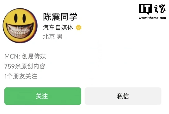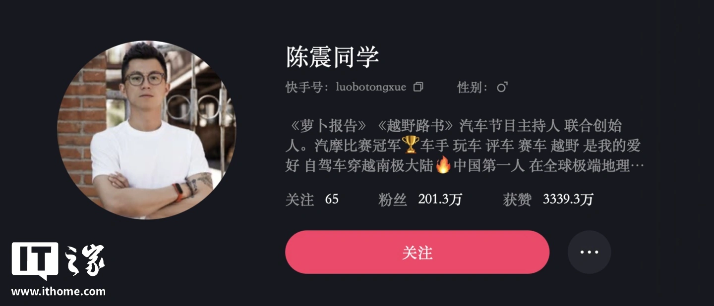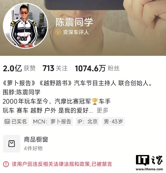汽車(chē)博主陳震被全網(wǎng)多平臺禁言 粉絲量超 2400 萬(wàn)