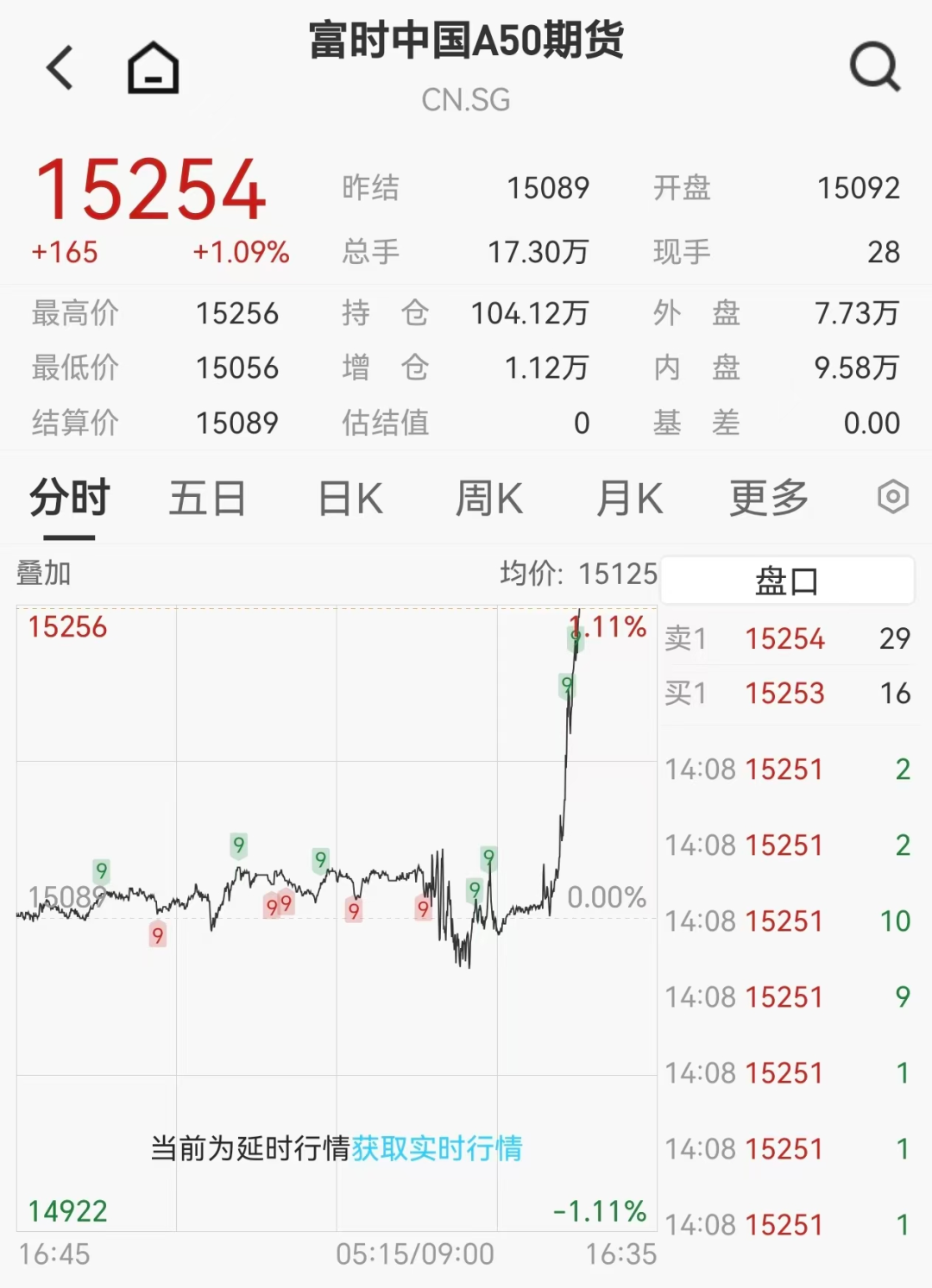 富時(shí)中國A50指數期貨快速拉升,漲幅一度擴大至1.09%,隨后有所收窄。