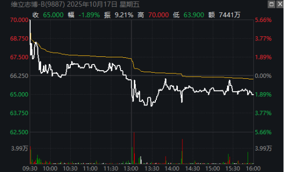 然而,維立志博次日開(kāi)盤(pán)漲5.66%后,公司股價(jià)持續下跌,最終收跌1.89%,報65.00港元/股。